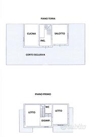 In zona residenziale, proponiamo abitazione semi indipendente su due livelli, composta al piano terra da ingresso, cucina abitabile, salotto e bagno di servizio; piano primo abbiamo due ampie camere matrimoniali con balcone e bagno con doccia.