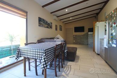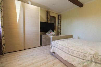 L'immobile è una porzione di casa libera su tre lati. Si trova a San Pietro in Casale, alle porte del paese. Le ristrutturazioni eseguite in più fasi hanno interessato sia l'interno che l'esterno trasformando completamente l'abitazione: di nuova realizzazione tutti gli impianti, con l'utilizzo di fonti energetiche rinnovabili, tutte le finiture, la facciata esterna, ora dotata di cappotto, il tetto. L'ingresso è indipendente con ampio spazio adibito a guardaroba ed organizzato con armadiature. La zona giorno ospita, senza alcuna separazione, il soggiorno e la cucina, quest'ultima con un bel affaccio sul giardino privato di circa 2.433 mq. Il piano terra comprende due camere da letto matrimoniali ed i servizi igienici. Il piano superiore ospita due ulteriori ambienti: una camera matrimoniale ed un ambiente passante attualmente organizzato come zona guardaroba. Esternamente è presente il garage di circa 13 mq. La proprietà esterna è piantumata con alcuni alberi da frutta e la privacy è garantita dall'alta siepe.