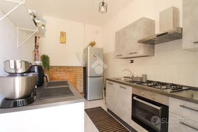 Completano la soluzione una camera matrimoniale, bagno dotato di box doccia e un pratico ripostiglio.