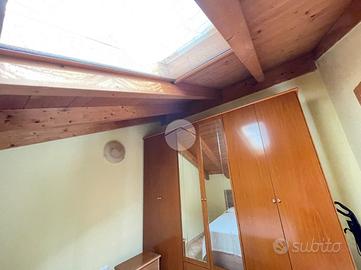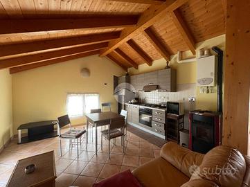 Il secondo appartamento colpisce per il suo stile caldo e accogliente, impreziosito da travi a vista che conferiscono carattere e autenticità agli ambienti.