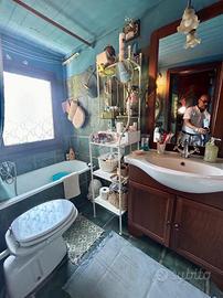 al piano secondo: due camere da letto,studio e bagno con vasca.Riscalamento autonomo a metano e impianto per termo stufa.