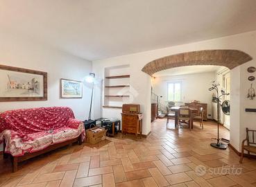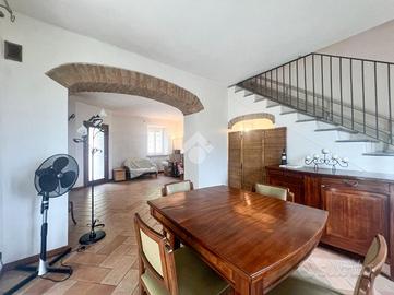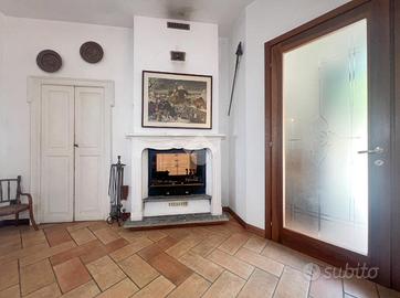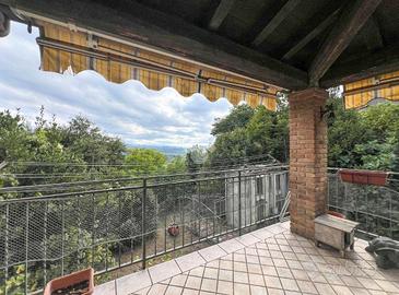 Al piano terra, l'ingresso con portoncino blindato introduce nella zona giorno composta da soggiorno e sala da pranzo. Protagonista è il camino bifacciale, che diffonde calore e atmosfera sia nella sala che nella luminosa cucina abitabile. Dal terrazzo coperto lo sguardo si apre su un panorama unico, che abbraccia vigneti, colline e castelli.