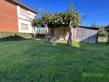 L'ingresso all'abitazione si apre su un giardino di proprietà dal quale si ha l'accesso alla cantina ed ai due depositi attrezzi.