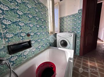 L'ampio balcone fa da accesso all'appartamento, al piano terra, composto da cucina abitabile, due camere da letto, ripostiglio e bagno finestrato.
