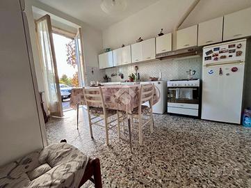 L'ingresso si apre sul corridoio che fa da disimpegno alla luminosa cucina abitabile dotata di portafinestra aperta su sfogo esterno, all'ampio soggiorno e, proseguendo, alle due camere da letto, entrambe matrimoniali, ed al bagno finestrato.