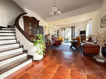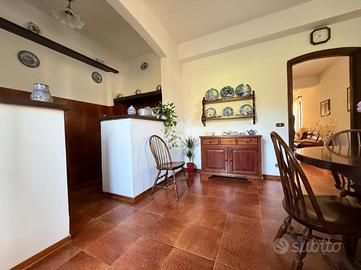 L'ingresso è sul soggiorno con cucina abitabile, che fa da disimpegno al luminoso salone, dal quale possiamo accedere alla veranda in giardino.