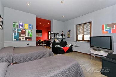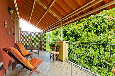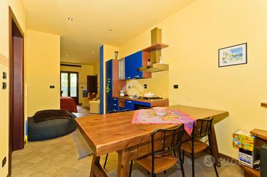 Salendo al primo piano, attraverso una comoda scala, si accede a un ampio salone con angolo cottura. Questo spazio è ideale per chi ama cucinare e intrattenere allo stesso tempo, grazie alla disposizione open space. Dal salone si esce su un grazioso terrazzo, un luogo perfetto per rilassarsi all'aperto, leggere un libro o cenare nelle serate estive.