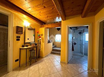 L'immobile si compone al piano terra di un'accogliente e spazioso salotto con cucina a vista. Tramite una comoda scala si accede al piano superiore con le tre camere da letto che affacciano sul balcone della facciata principale. La camera matrimoniale ha la cabina armadio. I bagni sono due ed entrambi finestrati.