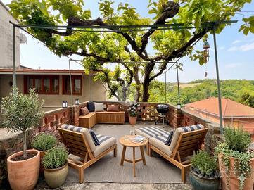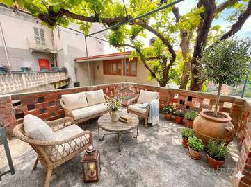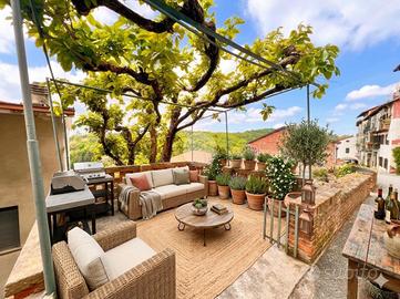 Nel cuore del borgo storico di Sciolze, casa semindipendente libera su due lati con doppio ingresso, inserita in un contesto tranquillo e caratteristico. La proprietà si sviluppa su due livelli e dispone di spazi esterni situati di fronte all'abitazione, facilmente accessibili e ben sfruttabili. Il giardino privato, già arricchito da alberi da frutto e un filare di uva, rappresenta uno spazio ideale per chi desidera coltivare un piccolo orto o trascorrere momenti all'aria aperta in totale relax. Di fronte alla casa si trova anche un piacevole terrazzo e una zona coperta collegata al magazzino sottostante, perfetta per pranzi all'aperto e momenti in compagnia. All'interno, il piano terra accoglie un soggiorno con camino e cucina a vista, affiancato da una cantina e da un disimpegno con scala che conduce al piano superiore. Qui si trova la camera matrimoniale, dotata di balcone con vista aperta, oltre al bagno. L'immobile è stato in parte aggiornato con infissi dotati di vetrocamera e porta blindata; gli ambienti risultano luminosi e gradevoli durante tutta la giornata, rendendo la casa accogliente e vivibile in ogni stagione. Una soluzione adatta a chi cerca un'abitazione con spazi esterni e un contesto riservato, senza rinunciare al fascino delle case di paese.
