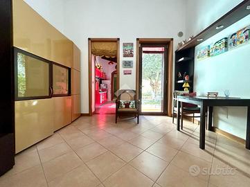 Proponiamo in vendita elegante casa semindipendente tipologia trivano al piano terra, costruita nel 2009, ideale per chi desidera comfort moderni, funzionalità e spazi esterni vivibili. L'immobile si distingue per il cortile carrabile privato e per il giardino retrostante, perfetto per momenti di relax all'aperto, cene estive o per chi ha bambini e animali domestici. Caratteristiche interne La casa è composta da: * Accogliente soggiorno; * Cucinotto riservato e funzionale; * Comoda zona lavanderia; * Due camere da letto, di cui una matrimoniale e una singola; * Bagno principale con doccia; * Doppio servizio con doccia; Gli ambienti sono ben distribuiti e luminosi, pensati per garantire praticità e comfort quotidiano. Dotazioni e comfort L'immobile è dotato di: * Fancoil Mitsubishi in ogni ambiente per caldo e freddo * Caldaia a gas per acqua sanitaria * Impianto di allarme * Tapparelle elettriche * Infissi in PVC effetto legno * Zanzariere * Riserva idrica * Impianto di irrigazione per il giardino Soluzione ideale per chi cerca un'abitazione pronta da vivere, con spazi esterni e dotazioni moderne, in un contesto riservato e tranquillo.