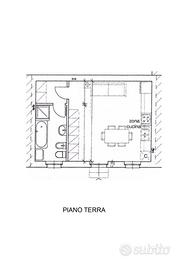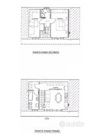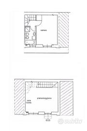 Un bilocale o trilocale distribuito tra il primo piano e il sottotetto, con la possibilità di recuperare un ulteriore locale mediante l'alzamento del tetto.