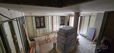 E' distribuita su 3 livelli:al piano seminterrato troviamo fondo mentre al piano terra e prima c'è la parte abitativa da terminare internamente.