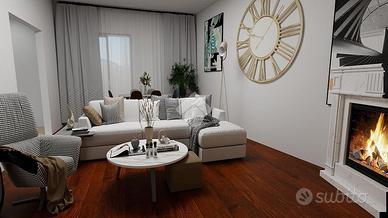 Varcata la porta d'ingresso, si accede a un disimpegno che funge da nodo di collegamento tra gli spazi della casa: da una parte la zona giorno, dall'altra l'area notte, ben separata per garantire privacy e tranquillità.