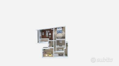 La zona notte è composta da una camera matrimoniale di generose dimensioni e da due camere singole, perfette per figli, ospiti, studio o ambiente hobby. Sono presenti due bagni: il primo dotato di doccia, pratico per l'uso quotidiano, e il secondo con vasca, ideale per momenti di relax.