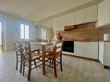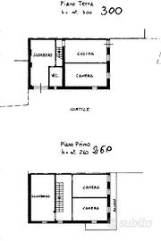 La casa si sviluppa su due livelli. Al piano terra si trovano la cucina, il salotto, un bagno finestrato dotato di doccia e un comodo locale di sgombero. Al piano superiore si accede alla zona notte, composta da due camere da letto entrambe affacciate sullo stesso balcone, dal quale è possibile apprezzare la vista aperta sul paesaggio circostante, oltre a un ulteriore locale di sgombero. L'abitazione si presenta in buono stato ed è già abitabile; la ristrutturazione ha interessato principalmente il piano inferiore.