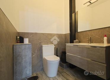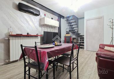 L'accesso alla proprietà avviene tramite il cortile condominiale che conduce all'ingresso principale dell'abitazione; l'immobile è disposto su due livelli, al piano terra troviamo la zona living con cucina a vista e bagno di servizio.