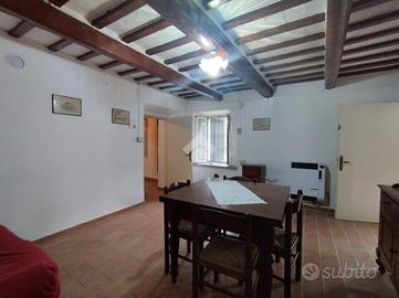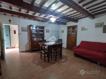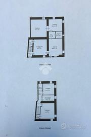 Libera su tre lati e circondata dal verde al piano terra l'ingresso conduce in un caldo salotto caratterizzato da pavimenti in cotto originali; travi a vista che raccontano il fascino autentico della casa la cucina è separata affiancata da un salottino e da una pratica cucina di servizio e un piccolo bagno.