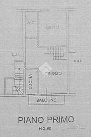 Primo piano: accessibile tramite scala privata, ospita l'appartamento principale disposto su due livelli e composto da soggiorno con balcone, cucinotto, bagno con doccia e camera matrimoniale.