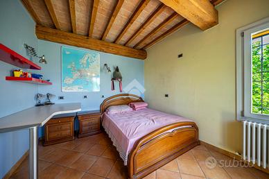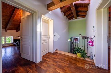 L'abitazione si sviluppa su più livelli: al piano terra troviamo soggiorno, cucina abitabile e bagno; al primo piano due camere da letto e un ulteriore bagno; all'ultimo livello, caratterizzato dal tetto in legno a vista, si trovano tre camere da letto e un terzo bagno.
