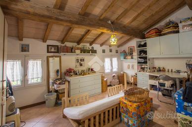 L'abitazione conserva inoltre alcuni elementi tipici delle case padronali della zona, tra cui: voltini in muratura e travetti in legno in diversi ambienti, tetto a vista in legno, soggiorno con volte e colonne.
