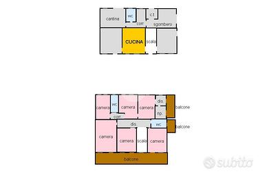 Soluzione a pochi minuti di auto da Sommariva Perno e Corneliano d'Alba.Casa libera su tre lati e disposta su due livelli abitativi. Le ampie dimensioni consentono di trasformarla e utilizzarla come casa bifamiliare. Il piano terra ospita: soggiorno, cucina, camera, bagno, cantina e garage.Il primo piano ospita: 6 camere e due bagni. Ottima esposizione al sole che rende gli spazi interni molto luminosi. Vista panoramica. Giardino privato e terreno agricolo pianeggiante di circa 2000 m2. Completa l'abitazione magazzino e garage. Parte di casa da ristrutturare. Cortile gravato da una servitù di passaggio.