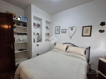 L'ingresso all'abitazione è duplice, sia con accesso pedonale che con carraio elettrico. Il piano terra si compone di cucina abitabile, studio, taverna, lavanderia, bagno e ripostiglio. Al piano superiore si trova invece un soggiorno, tre camere da letto, un secondo bagno, e una quarta camera da letto con la predisposizione per collocarvi una seconda cucina abitabile. A completare il piano superiore vi sono tre poggioli di cui due con tenda parasole elettrica appena sostituita.