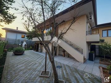 Suddivisa in 9 locali, con 2 bagni ( di cui uno con box doccia doppio), garage con accesso esterno ed ingresso interno dall'abitazione, 2 posti auto scoperti, sottoscala interno, sottotetto coibentato, non abitabile ma accessibile come locale di sgombero, scoperto privato di 200 mq, parzialmente pavimentato, con gazebo, angolo barbeque, orto con impianto di irrigazione e alberi da frutto.
