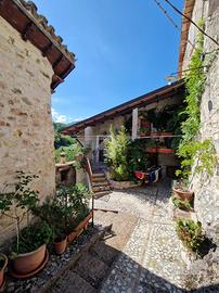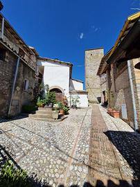 A circa 12 Km da Spoleto, all'interno di un borgo tipico, proponiamo in vendita porzione cielo terra di circa 100mq, la struttura si compone di ampia cucina con camino, due camere matrimoniali, bagno, cantine/fondi e garage, inoltre la proprietà si compone anche di un appezzamento di terreno agricolo di circa 800mq.