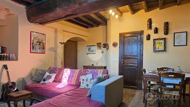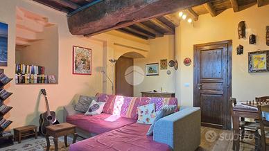 Non stiamo parlando di un appartamento 'in stile rustico'. Questa è una vera torre del Castello medievale dell'Albornoz, a San Giacomo di Spoleto: 150 mq su tre livelli, completamente ristrutturata nel 2022 e con consolidamento sismico recente. Pietra antica fuori, comfort moderno dentro.