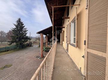 L'abitazione si sviluppa su due livelli ed è circondata da un ampio cortile privato con travata, perfetto per momenti di relax o convivialità all'aperto.