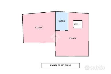Al piano terra, si trovano gli spazi per una cucina, e un salotto, mentre al primo piano sono presenti due camere da letto e un bagno.