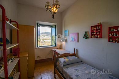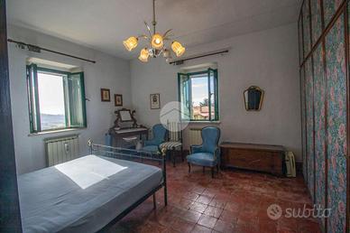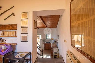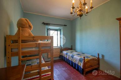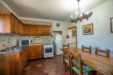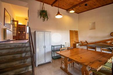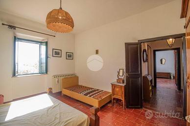 La proprietà che misura circa 235 mq, si sviluppa su due livelli: Al piano terra, troviamo un doppio soggiorno di cui uno adibito a zona relax, una cucina abitabile con camino e con accesso al portico esterno dove troviamo anche un forno storico a legna. Al piano primo, abbiamo accesso alla seconda cucina abitabile con camino, un disimpegno ed un balcone con vista panoramica sul Monte Soratte e sul borgo di Tarano, vi sono inoltre quattro camere da letto tutte con pavimento in cotto originale ed un bagno con doccia.