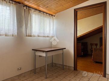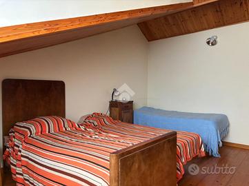 Dal soggiorno si accede alla soffitta, dove si trova un'ulteriore camera mansardata con tre letti singoli, ideale come spazio ospiti o stanza giochi.