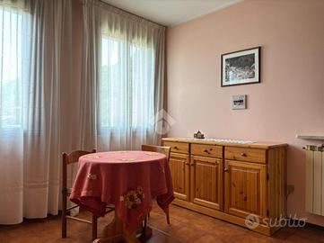 Sullo stesso livello si sviluppa la zona notte, che comprende una camera matrimoniale, una camera singola con accesso alla terrazza e un bagno piastrellato dotato di vasca.