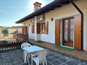 Casa semindipendente degli anni '80 disposta su due livelli, arricchita da giardino privato e comode pertinenze esterne.