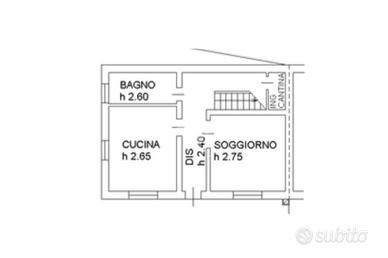 Al piano terra l'ingresso si apre su un accogliente disimpegno che conduce, da un lato, a un luminoso soggiorno e, dall'altro, a una cucina separata e abitabile. Sullo stesso livello si trovano inoltre un bagno con doccia e la scala che porta alla cantina, perfetta come spazio di servizio o ripostiglio.