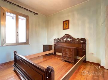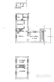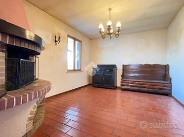 L'ingresso si apre su un disimpegno che conduce sulla destra al bagno finestrato con doccia e a una cucina semi abitabile. Sulla sinistra troviamo la zona pranzo, collegata a una stanza adibita a soggiorno, valorizzata da un caminetto ad angolo. Dal piano terra si accede tramite scala interna al primo piano, dove sono presenti una camera matrimoniale e una camera singola.