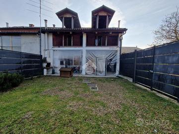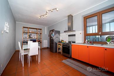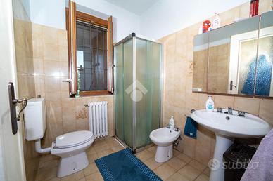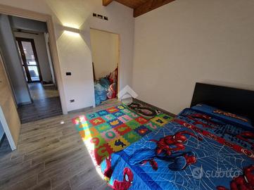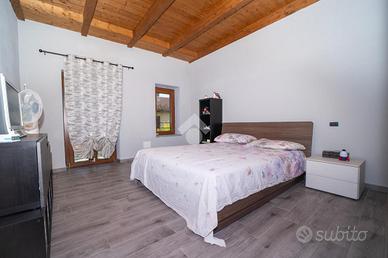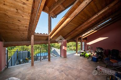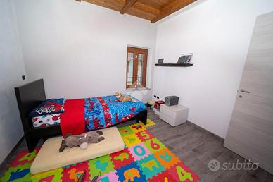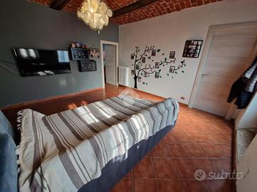 La porzione di cascinale libera su due lati si trova nella zona collinare del comune di Tigliole. L'ingresso è living sull'ampio salotto e la cucina abitabile rimane separata ed è direttamente collegata al giardino privato, posteriore della casa attrezzato con barbecue. Il disimpegno conduce all'antibagno attrezzato da lavanderia e al bagno finestrato del piano dotato di box doccia. Il piano terreno gode anche della presenza di una prima camera da letto attualmente utilizzata come lavanderia. La moderna scala in pietra conduce alla zona notte con riscaldamento a pavimento in cui si trovano il salotto collegato alla terrazza panoramica, il bagno con vasca e doccia e due ampie camere da letto: una con affaccio sul balcone e l'altra in cu si trova la cabina armadio. La ristrutturazione risale al 2017 e ha interessato la caldaia, i serramenti sostituiti con quelli più moderni in pvc con doppio vetro e sono state installate le zanzariere su tutti gli infissi esterni.