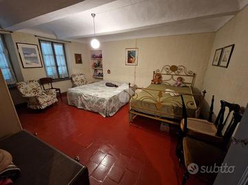 Tramite la scala interna in pietra, si accede alla zona notte in cui si trovano due ampie camere da letto con l'uscita sul primo balcone, e alla terza camera con più privacy poiché sita al secondo piano della casa con balcone anch'essa. Completa la proprietà la cantina al piano interrato e un ulteriore ripostiglio esterno. Una decina d'anni fa sono stati rifatti il tetto e le grondaie ed è stato fatto il vespaio.