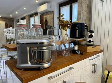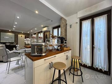 -zona giorno luminosa con soggiorno con cucina a vista e camino a legna;