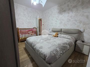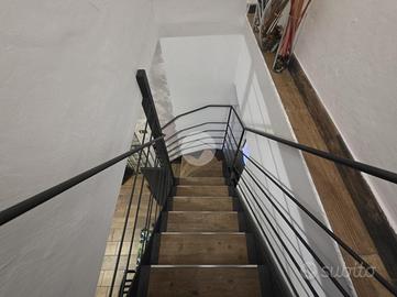 La comoda scala in ferro battuto e legno conduce alla zona notte dove troviamo il secondo disimpegno con bagno anch'esso finestrato con box doccia e vetro cemento, due camere da letto dotate entrambe di balcone, tra cui la camera matrimoniale che è dotata anche di scala esterna che conduce al cortile.