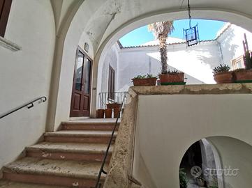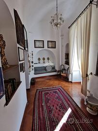 Alla proprietà si accede, passando per il grande e signorile androne, da una scalinata a doppia rampa. L'ampio salone, il salotto, la cucina, le camere: qui il tempo sembra essersi fermato. Davvero emozionante poter attraversare la loggia dell'Arco e godere della vista che spazia da un lato sull'antica Chiesa del Rito e dall'altra sull'intera via Nicola Fiani.