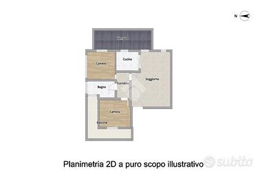 Il secondo appartamento è composto da cucina abitabile, soggiorno con affaccio su terrazzo, due camere da letto e bagno finestrato con vasca.