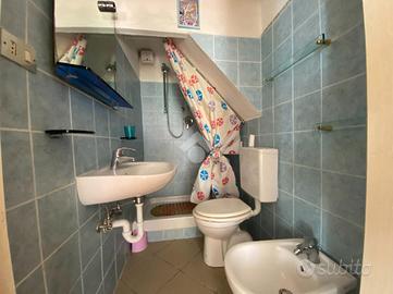 Al secondo e ultimo piano tramite scala interna si accede al bilocale completo di cucinino con balcone, camera da letto, bagno dotato di vasca e finestra e sala con accesso al secondo terrazzo.