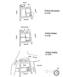 L'immobile, disposto su tre livelli, ha doppio ingresso, uno al piano terra dove si entra in ampio corridoio che conduce alla cucina abitabile e al bagno cieco con doccia e alla scala interna, al piano superiore troviamo due camere utili e sala da pranzo dove cè il secondo accesso tramite terrazzo privato.