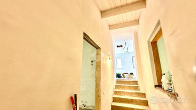 In centro storico, in vendita, casa semindipendente unica nel suo genere da ristrutturare dall'elegante design, giardino privato, garage e locale tecnico. Da un open space luminoso si accede ad un'ampia cucina, un ampio bagno e lavanderia. Da una particolare scala, con scalini sospesi e corrimano a soffitto si accede alla zona notte, composta da due camere matrimoniali ampie e luminose, ampio bagno e possibile terza camera da letto realizzabile sopra il bagno grazie ad alti soffitti che caratterizzano tutto il piano. L'immobile ha un'ottima efficienza energetica, ha cappotto interno ed esterno, soffitto ventilato e isolato dalla lana di roccia ed è antisismica. I serramenti, tutti in triplo vetro, con apertura anta a ribalta per facilitare e agevolare la microcircolazione. Grazie ai pannelli fotovoltaici installati sul tetto, l'immobile è privo di allacci gas/energia elettrica. Di pertinenza abbiamo anche una cantina caratterizzata da originarie volte a botte e con accesso diretto dal giardino così creando possibilità di sfruttare in modo ottimale e moderno questo spazio seminterrato. Non perdete l'oppurtunità !!!