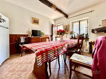 La casa è dotata di un ampia cucina contenente il camino a legna che consente di scaldare gran parte dell'abitazione. Dalla cucina si passa alla sala, la quale consente l'accesso alla cantina e al piano superiore. Giunti in cima alle scale troviamo il bagno finemente ristrutturato e le due camere da letto molto luminose. Il cortlie posto davanti all'igresso è provvisto di un locale utilizzabile come lavanderia accanto al garage che, essendo di ampia metratura, consente di essere utilizzato in parte anche come deposito oggetti. Nel giardino di circa mille metri quadri, sono presenti anche un forno a legna e un gazebo, ideale per rilassarsi e godersi le belle giornate estive.