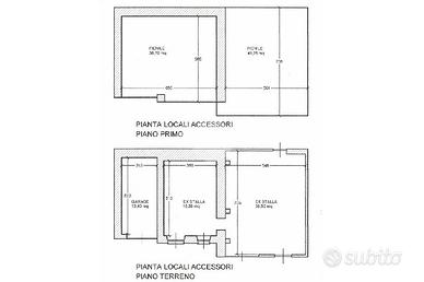 Sul fronte dell'immobile c'è un edificio anch'esso disposto su due livelli di circa 170 mq totali attualmente adibito a ex fienile e stalle dove con il piano di recupero si può sfruttare trasformandolo in una terza unità abitativa oppure per la realizzazione di box auto o magazzini.