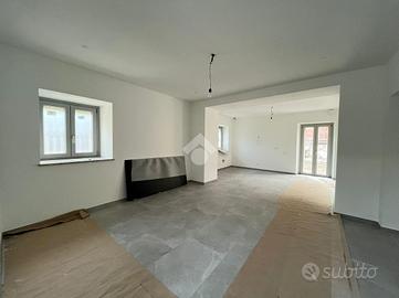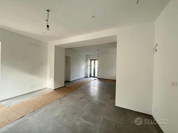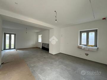 Al piano terra si accede tramite un portoncino blindato che si apre su un ampio e luminoso soggiorno con cucina a vista, con uscita diretta sul giardino privato, perfetto da vivere nelle giornate più calde.