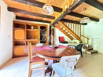 In posizione tranquilla e circondata dal verde con un giardino di 500mq, proponiamo casa semindipendente disposta su due livelli.